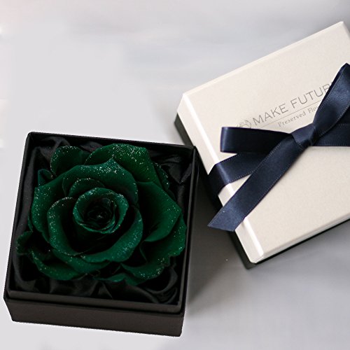 Makefuture プリザーブドフラワー ダイヤモンドローズ アモローサ使用 フラワーボックス (ブリティッシュグリーン)