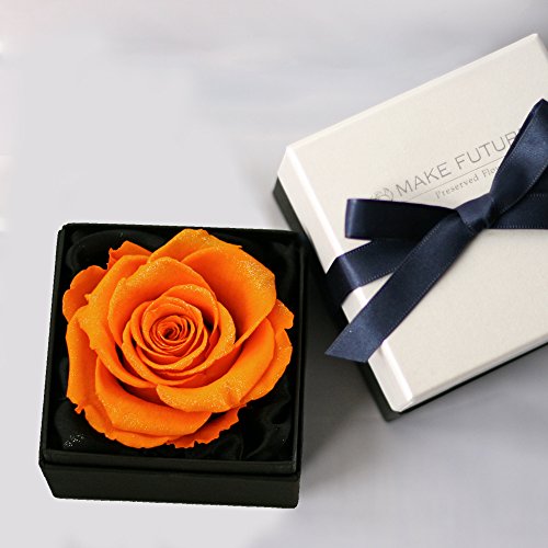 Makefuture プリザーブドフラワー ダイヤモンドローズ アモローサ使用 フラワーボックス (マンダリンオレンジ)