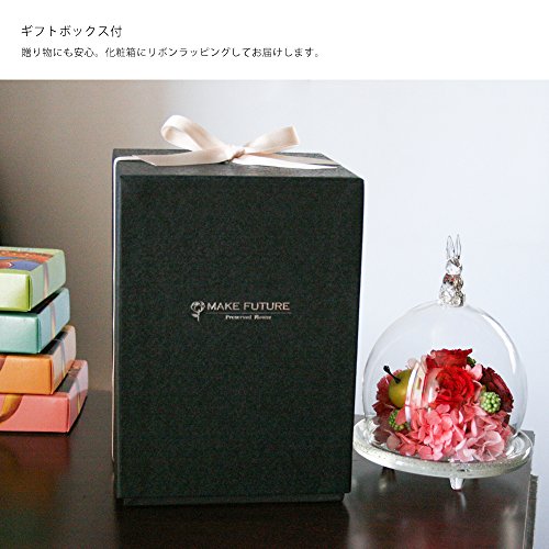 プリザーブドフラワー 結婚祝 花 ガラスドーム ギフト 誕生日 バースデー 女性 置物 ラビット うさぎ ラパン・ミニョン (ピンク)