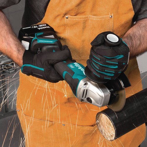 Makita delivers corded grinding performance without the cord with the 18V LXT Lithium-Ion Brushless 4-1/2” Cut-Off/Angle Grinder with Paddle Switch (model XAG10M). It's powered by a Makita brushless motor for longer run time, increased power and speed, and longer tool life. For the most demanding applications, Makita’s exclusive Automatic Speed Change Technology automatically adjusts speed and torque during operation for optimal performance. For added convenience, the XAG10M has an electric brake that stops the wheel in 2 seconds or less upon release of the paddle switch.