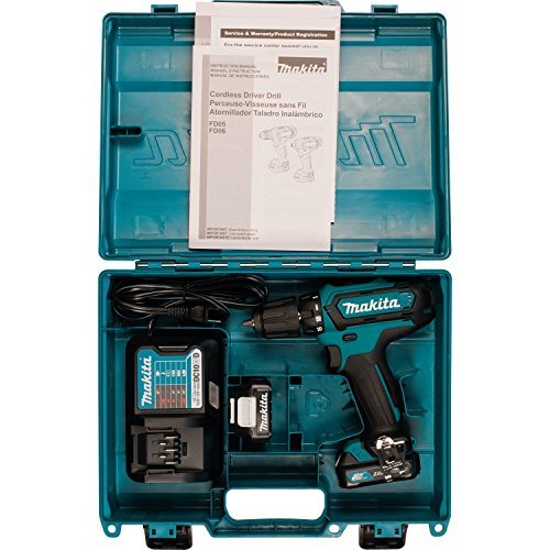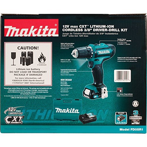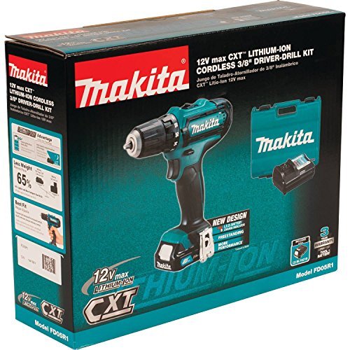 The Makita 12V max CXT Lithium-Ion Cordless 3/8" Driver-Drill delivers power and speed in an ultra-compact size for drilling, driving and fastening applications. The kit includes two 12V max CXT Lithium-Ion slide-style batteries for improved balance and ergonomics over pod-style batteries. For added convenience the batteries include an on-board L.E.D. charge level indicator. e FD05R1 weighs only 2.4 lbs. (with 12V max CXT 2.0Ah battery) and delivers 250 in.lbs. of Max Torque. It's an ideal solution for users seeking a more compact driver-drill with less weight or for applications in tight spaces. For longer run time, all 12V max CXT cordless tools are also compatible with the 12V max CXT Lithium-Ion 4.0Ah battery (BL1041B). 12V max CXT lithium-Ion batteries are engineered with a Battery Protection Circuit that protects against overloading, over-discharging and over-heating. It's part of the expanding 12V max CXT series, combining performance with superior ergonomics in a compact size.