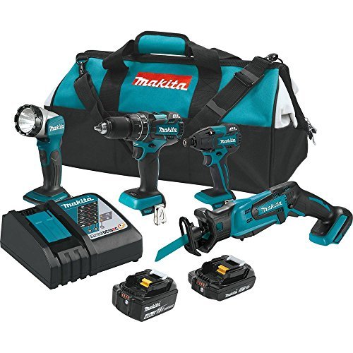 The Makita 18V LXT Lithium-Ion Cordless 4-Piece Combo Kit (model XT444MR) is built for the pro-user who demands a range of best-in-class cordless solutions. The XT444MR includes Lithium-Ion cordless tools for drilling, driving, fastening, and demolition, as well as an L.E.D. flashlight. For increased versatility the kit includes an 18V LXT 4.0Ah battery with a charge time of only 40 minutes, and an 18V Compact 2.0Ah battery with a charge time of only 25 minutes. Both batteries are fully compatible with over 100 Makita 18V Lithium-Ion tools and accessories. For improved tool performance and extended battery life, Makita created Star Protection Computer Controls. Star Protection is communication technology that allows the Star Protection-equipped tool and battery to exchange data in real time and monitor conditions during use to protect against overloading, over-discharging and overheating.
