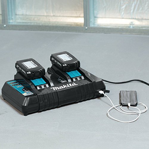 Equipped with Star protection computer Controls to protect against overloading, over-discharging and over-heating. Build your own Makita tool kit with the 18V LXT Lithium-Ion battery and dual port charger Starter pack (5.0Ah). Makita offers over 150 cordless tools and most are available as "bare tools" (tool only, no batteries or charger included). pick up the Starter pack, then purchase the 18V "bare tools" you need to get the job done – including 18V X2 LXT tools powered by two 18V batteries. It's an ideal way to start building a Makita cordless tool line-up. Makita 18V Lithium-Ion batteries resist self-discharge so they're ready for use even after long periods of storage. The Rapid optimum charger is a smart-charging system that communicates with the battery during charging to monitor current, voltage and temperature. This advanced charging technology helps optimize battery life and deliver a faster charge. The 18V dual port Rapid optimum charger (dc18rd) charges 2 batteries simultaneously, giving tool users unparalleled charging efficiency so their batteries spend more time working and less time sitting on the charger.