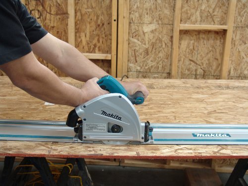 Get precise, accurate cutting and a splinter-free mirror finish, without the table saw. Makita's SP6000K 6-1/2-Inch Plunge Circular Saw delivers smooth, straight cuts. When you combine it with an optional guide rail system, constructed with anodized aluminum, the saw and rail system work together to produce accurate cuts with minimal tear-out. The saw combines a powerful 12 amp motor and a large cutting capacity with magnesium components for less weight and electronic speed control to maintain constant speed under load for smooth cutting and a splinter-free mirror finish. The SP6000K is a more portable option to a table saw and is ideal for use on the jobsite or in the shop. Includes 55 inch guide rail.
