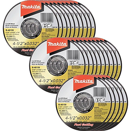 67 grit abrasive for cleaner cuts. Makita Ultra Thin Cut-Off Wheels are .032" thick which is 20% thinner than most competitor wheels. These wheels are perfect for making cuts in metal and stainless steel pipes, sheet, and channel