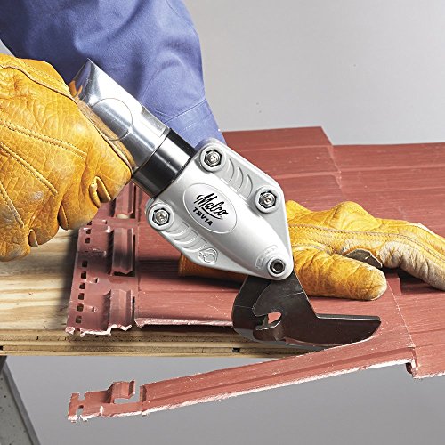 Long life blades also replaceable. Use air power to make fast straight cuts, left circles and squares in all popular vinyl siding styles. A knife-like beveled blade edge and easy scissor action quickly penetrates vinyl siding to start cut. Non-slip bite and 3/8 inch (9.53 mm) jaw opening tackles the lock-seam edge of siding with ease. And the wide opening jaws combined with a 3/4 inch (19.05 mm) cutting length make easy work of cutting through profiles. Malco Vinyl-Cutting TurboShears operate at high or low speeds for the control you need to follow a precise cut line. The sleek aluminum-cast shear head and compact pneumatic motor housing offer outstanding accessibility and power at maximum speed. A lateral blade gap adjustment capability ensures that optimum cutting performance and maneuverability is maintained for the life of the blades. Heavy-duty drive components and beefy, hardened carbon steel blades offer long service life. Replacement Blades are available and easily installed on the job.