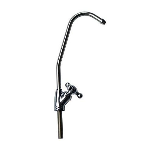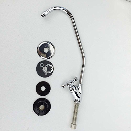 An elegant lead-free European style water filter faucet or Reverse Osmosis system faucet will add a great accent to your kitchen. It features a smooth quarter turn handle with a ceramic seat for a lifetime of service. A 1/2-Inch hole is all that is needed for the faucet stud (all series), but a cover plate is included to accommodate larger pre-drilled holes. It is 8.75-Inch tall and has a swivel spout with a reach of 5.5-Inch. for 1/4-Inch tubing. NOTE: not to be used with RO systems that require an Air gap faucet which has three connections on bottom of faucet.