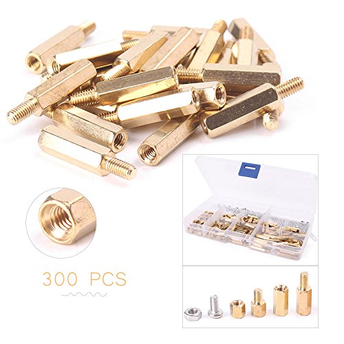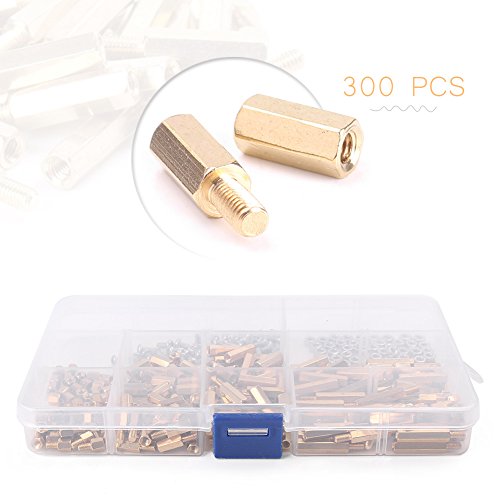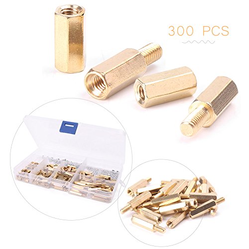 Mallofusa 300pcs w/ Box M3 ブラス 六角柱 スタンドオフス ペーサー スクリュー ナット アソートメント セット