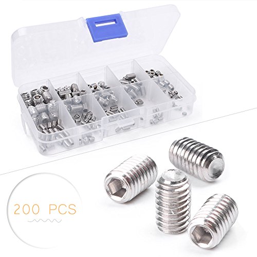 Mallofusa 200pcs w/ Box M3 M4 M5 M6 M8 ステンレス 鋼製 六角 穴付き ボルト アソートメント キット