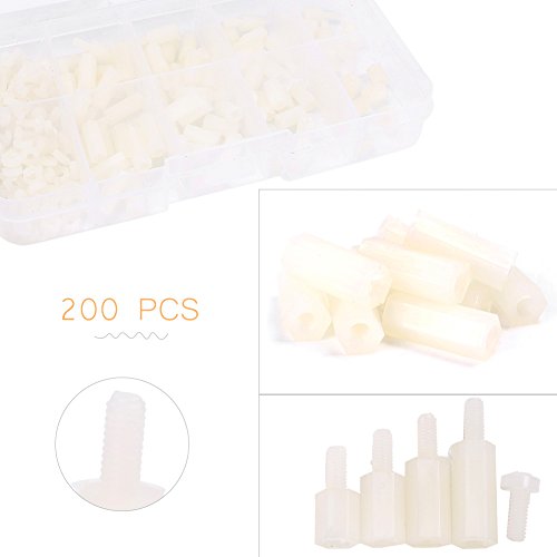 Mallofusa 200pcs M2.5 Nylon メス オス スタンドオフ スペーサ ボルト ナット 品揃えセット