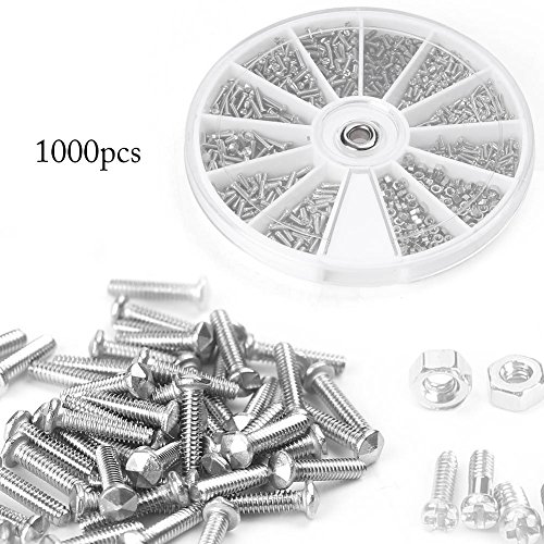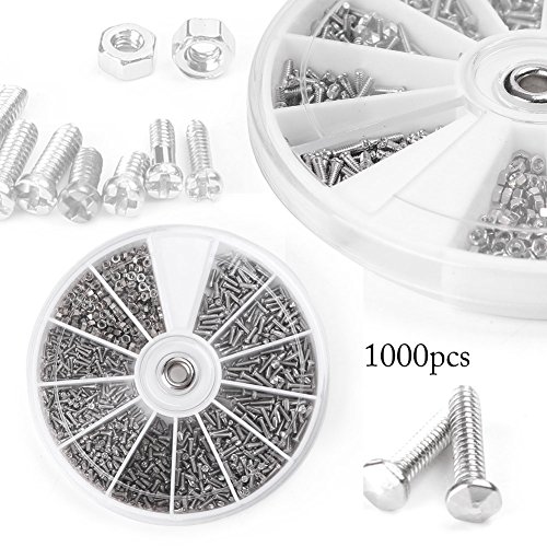 Mallofusa 1000pcs 12 細かい スクリュー ネジ ナット アソートメント キット M1 M1.2 M1.4 M1.6 w / 実用的 ツール