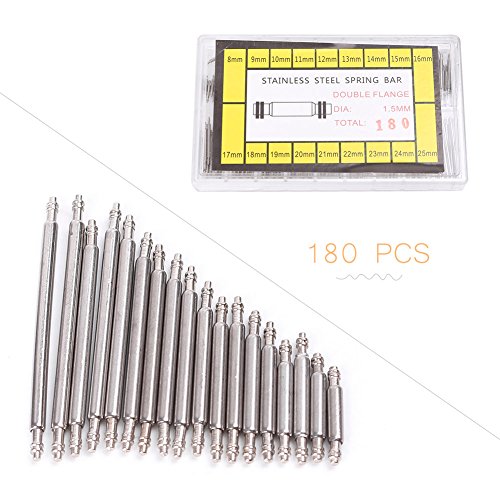 Mallofusa ウォッチメーカー 修理 ツール 180pcs 8-25mm ウォッチ バンド スプリング バー ストラップ リンク ピン