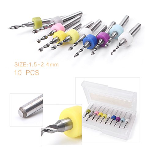Mallofusa 10Pcs 1.5mm-2.4mm PCB プリント回路 基板 炭化物 ミニ マイクロ ドリル ビット CNC