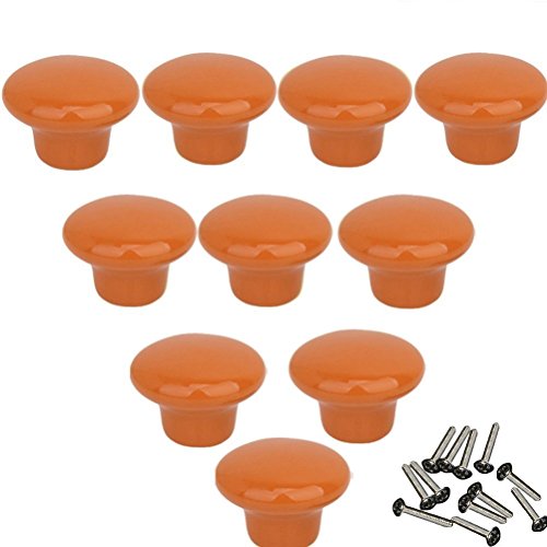 Mallofusa セラミック ドア取っ手 引き出し ノブハンドル 円形 本棚 キャビネット 食器棚 取手 10枚セット (オレンジ)