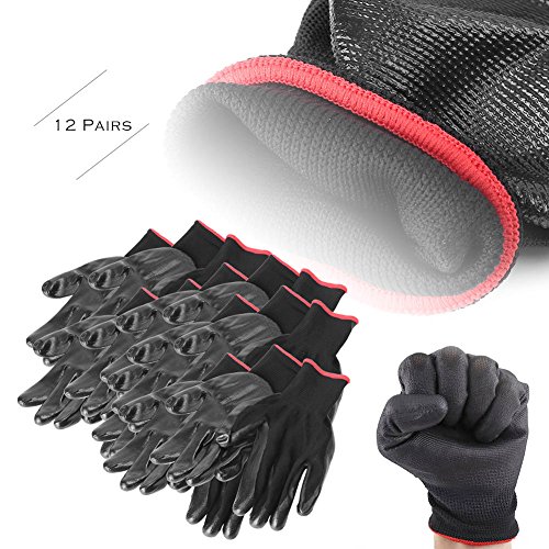 Mallofusa 12ペア ナイロン PU コーティング 手袋 保護 ガーデン グリップ ビルダー アンチ スタティック
