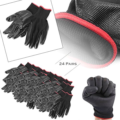 Mallofusa 24ペア ナイロン PU コーティング 手袋 保護 ガーデン グリップ ビルダー アンチ スタティック