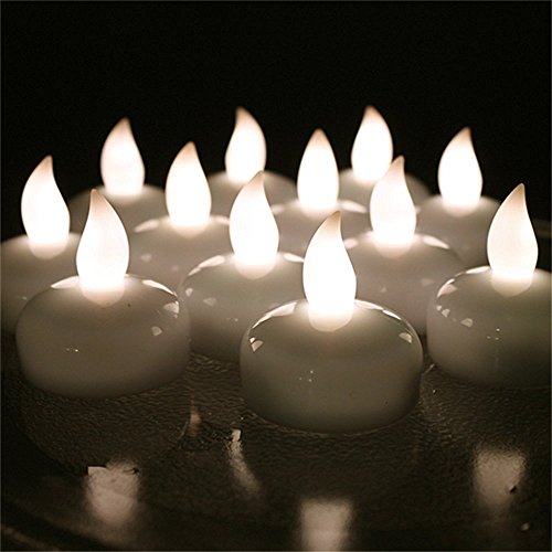 - パッケージ内容:ホワイトLEDフローティングキャンドル x 12個、CR2032コイン電池 x12個 (キャンドル内に内蔵)。