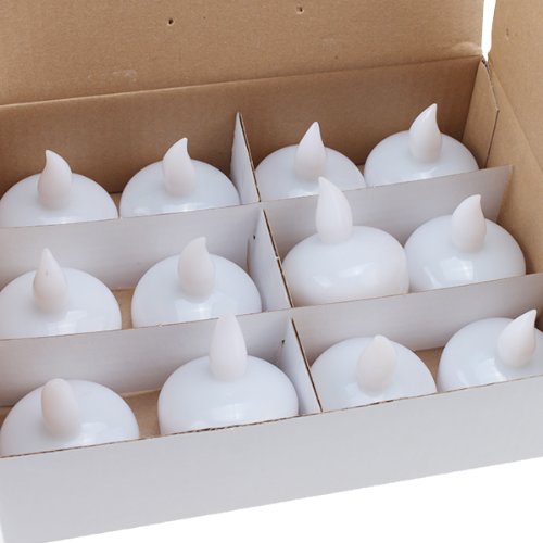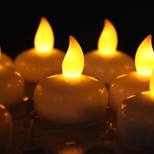 - パッケージ内容:ホワイトLEDフローティングキャンドル x 12個、CR2032コイン電池 x12個 (キャンドル内に内蔵)。