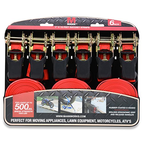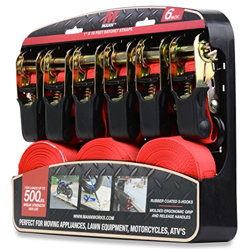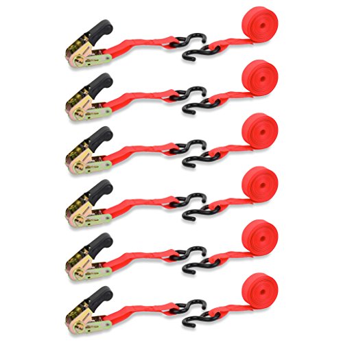 Mannラチェットタイダウンストラップ6パックwith S字フック1インチx 15-feet 500ポンドロードキャップ – 1500 kg破断強度 Standard 6 pk CRS