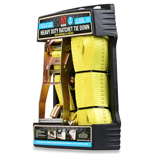 Mann Ratchet Tie Down Straps 2" Wide Extra Heavy duty J- hook イエロー CRS