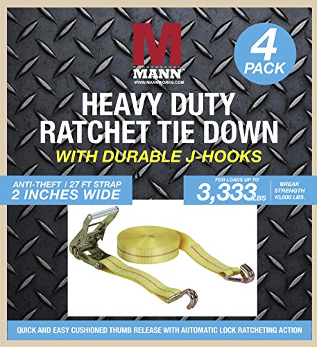 Mann Ratchet Tie Down Straps 2" Wide Extra Heavy duty J-hook 4 pk CRS