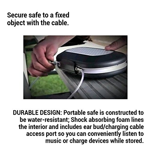 and lock down. Lock up valuables with the cable wrapped tightly to the safe or wrapped securely around a fixed object. Cable doubles as a carrying handle. This personal safe has a durable water-resistant construction. Comes with set your own