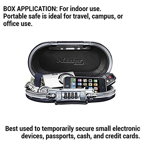 The Master Lock 5900D is a portable personal safe. Lightweight and portable, this personal safe protects MP3 players, cell phones, cameras, gaming devices, cash, credit cards, jewelry, keys, passports, sunglasses, or other small valuables. Lock up.