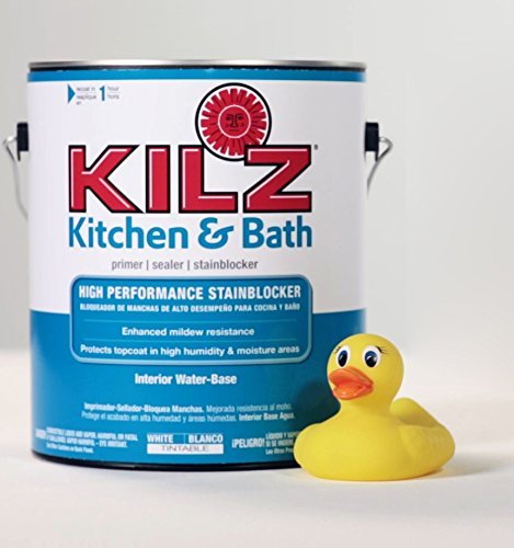 This is a 1-Gallon can of KILZ kitchen & bath primer. Features high mildewcide Content that will help prevent mildew growth kitchens, baths and other interior spaces prone to humidity and moisture. Specially designed for interior, residential surfaces in high-humidity, moisture and temperature environments including kitchens, bathrooms, powder rooms and laundry rooms. KILZ kitchen & bath primer provides an enhanced mildew-resistant film that helps prevent mildew growth on the primer surface which may otherwise get "trapped" between the primer and paint coats. Kitchen & bath primer is White primer which helps provide a smooth and level finish. It offers high hide for color changes, blocks light to medium stains, promotes adhesion and seals porous surfaces. This low odor, very low VOC latex-primer Dries quickly and can be recoated in 1 hour. Clean up is easy with soap and water. This is a 1-Gallon can of KILZ kitchen & bath primer. Features high Mildewcide content that will help prevent mildew growth in kitchens, baths and other interior spaces prone to humidity and moisture.