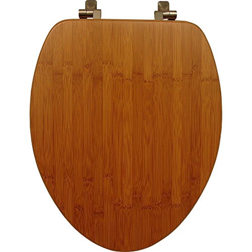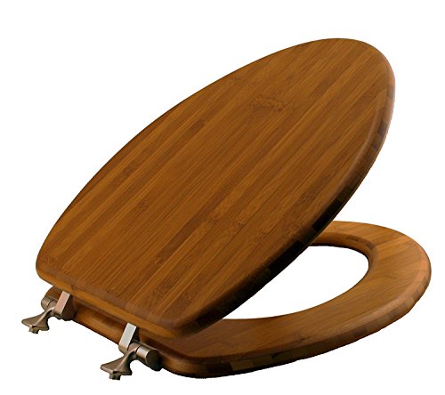 (Elongated) - Mayfair Solid Bamboo Toilet Seat with Brushed Nickel Hinges, Elongated, Dark Bamboo, 19401NI 568