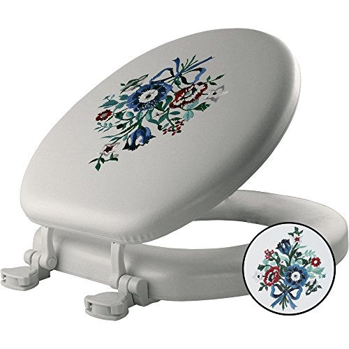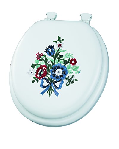 Mayfair 1317EC 000 Bouquet Embroidered Soft Toilet Seat with Lift-Off Hinges, Round, White by Mayfair