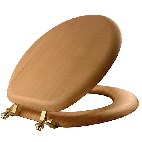 Mayfair 9601BR 418 Natural Reflections Wood Veneer Toilet Seat with Brass Hinges, Round, Maple by Mayfair