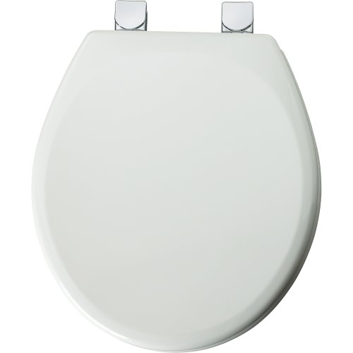 Mayfair 49CPEC 000 Molded Wood Toilet Seat with Chrome Lift-Off Hinges and STA-TITE Seat Fastening System, Round, White by Mayfair