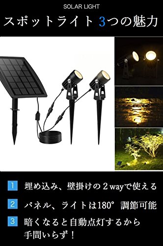 - 【電気代0円】太陽光で充電するから、電気代がかからないソーラー スポットライトです。6~8時間のフルチャージの場合は、8~9時間程点灯します。