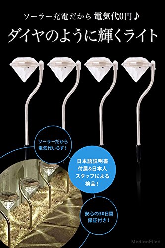 MedianField 【 led ガーデンライト 12個 セット 】 たっぷり ダイヤモンド 型 ソーラー 充電 ledライト ソーラーライト 屋外 ガーデニング (ホワイト×3)
