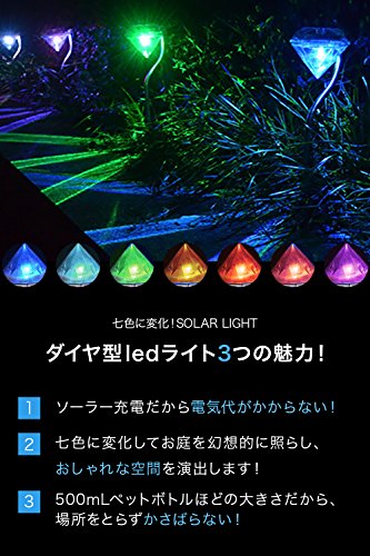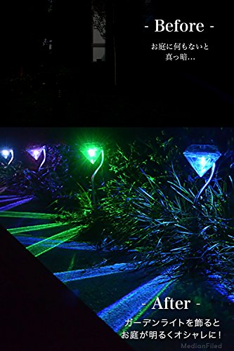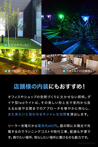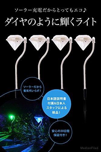 MedianField 【 led ガーデンライト 4個 セット 】 ダイヤモンド 型 ソーラー 充電 ledライト ソーラーライト 屋外 ガーデニング (七色)