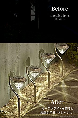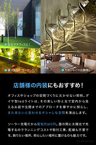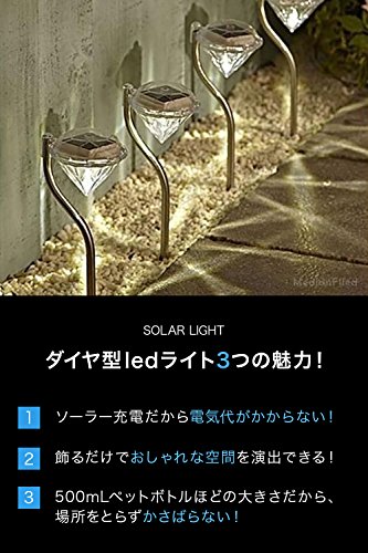 MedianField 【 led ガーデンライト 4個 セット 】 ダイヤモンド 型 ソーラー 充電 ledライト ソーラーライト 屋外 ガーデニング (ホワイト)