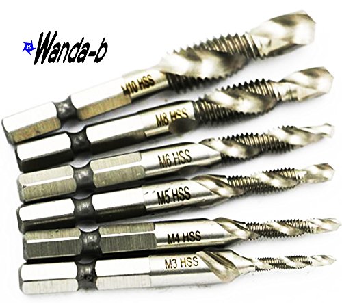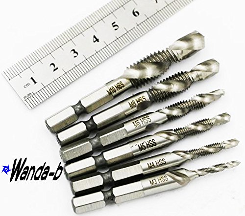 - HSS 6角軸 ドリルタップ 6本セット M3 x0.5 M4 x0.7 M5 x0.8 M6 x1.0 M8 x1.25 M10 x1.5 軸:1/4"(6.35mm)