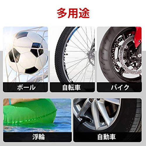 - 【広い用途】:空気入れ 電動は二種類のアダプターノズルが付きので、車だけではなく、自転車、バイク、ボール、浮き輪及びプールなどにも空気を入れることができる。様々なものにご利用いただけます。