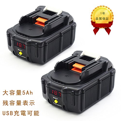 マキタ BL1850 18V 互換 バッテリー 5000mah 5.0Ah 大容量 BL1830 BL1840 BL1860 対応 残量表示 リチウム イオン 電池 USB充電可能 USB アダプタ ADP05 互換 2個セット