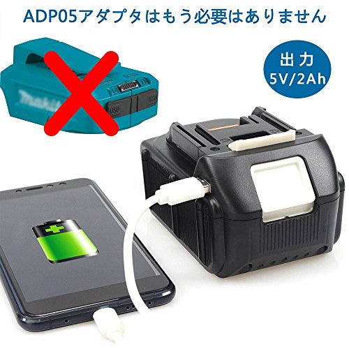 マキタ BL1860 18V 互換 バッテリー 6000mah 6.0Ah 大容量 BL1830 BL1840 BL1850 対応 残量表示 リチウム イオン 電池 USB充電可能 USB アダプタ ADP05 互換