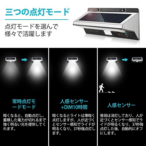 - ♥【3つの知能モード】他社のセンサーライトと比べて、最大の差別は品質管理とこの三つの点灯モードです。人感センサーと明暗センサーが搭載されます。夜になると自動的に点灯します。人の動きが感知されると自動的に常夜灯モードから全灯モードに転換します。それと、弱いライトモードあり、隣の人に迷惑をかけておりません。