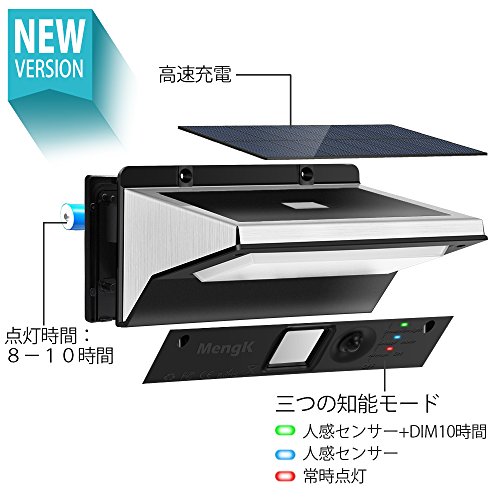 MengK 21 LED ソーラーライト 人感センサー搭載 ウォールライト 太陽発電 省エネ 防犯ライト 安全を守る