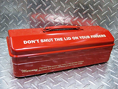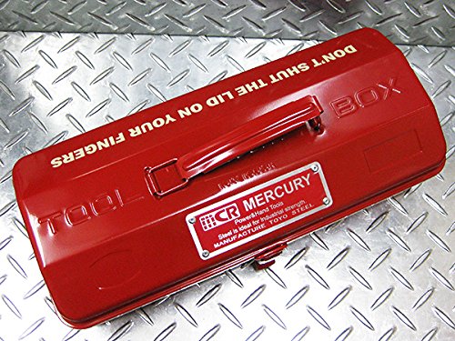 スチール製のヘビーデューティーな『Mercury(マーキュリー)』ブランドのTOOL BOX!! しっかりとした密閉構造で運びやすい取っ手付きで機能性もデザイン製も抜群です☆ 本体はスチール製で、フタを開けると広く使えるトレーなしタイプになっています♪ これだけ見た目にカッコイイと道具箱の他に救急箱やメイク道具なんかを入れても便利に使えます★☆ 男性から女性まで幅広いファンに支持されているマーキュリーブランドなんで 大切な人へのプレゼントとしても最適です!! ●サイズ:横37cm×縦16cm×高さ15cm(約) ●材質:スチール製