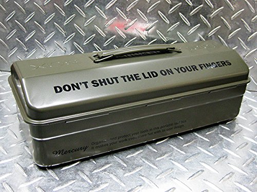 スチール製のヘビーデューティーな『Mercury(マーキュリー)』ブランドのTOOL BOX!! しっかりとした密閉構造で運びやすい取っ手付きで機能性もデザイン製も抜群です☆ 本体はスチール製で、フタを開けると広く使えるトレーなしタイプになっています♪ これだけ見た目にカッコイイと道具箱の他に救急箱やメイク道具なんかを入れても便利に使えます★☆ 男性から女性まで幅広いファンに支持されているマーキュリーブランドなんで 大切な人へのプレゼントとしても最適です!! ●サイズ:横37cm×縦16cm×高さ15cm(約) ●材質:スチール製