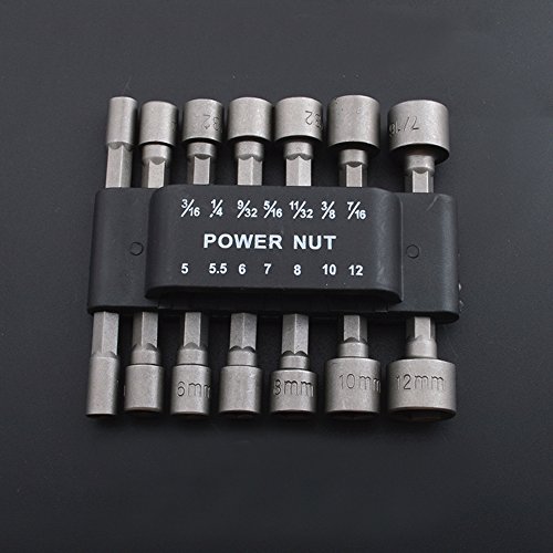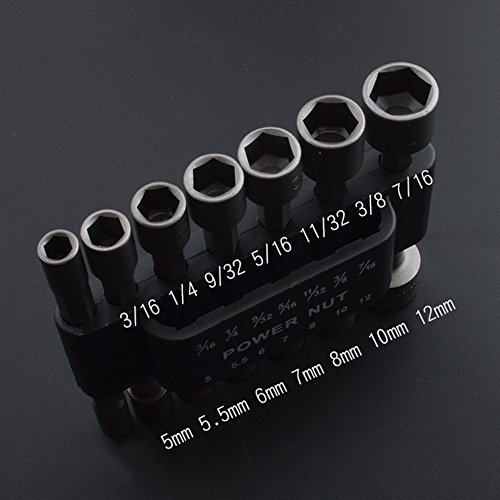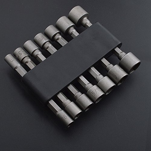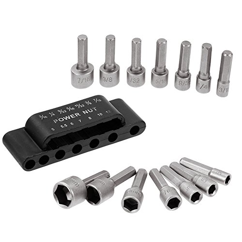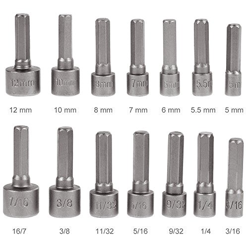 Merssavo 14PcパワーナットドライバドリルビットセットSAEメトリックソケットレンチネジ1/4 "六角シャンク