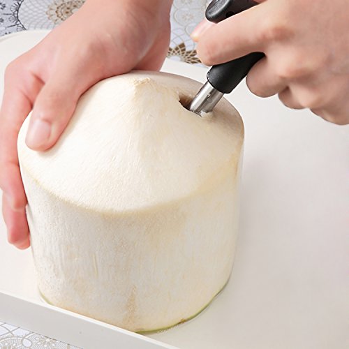Merssavo ステンレススチールココナッツオープナーナイフ掘削ツールキッチンドリルガジェットブラック