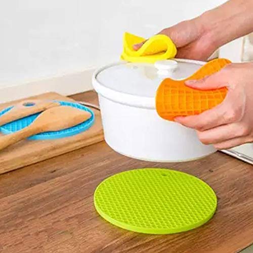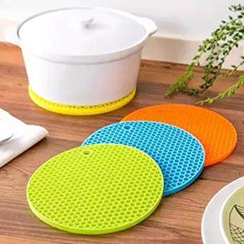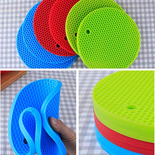 - シリコンの使用方法:赤、黄、緑、青の丸いハニカムポットマット