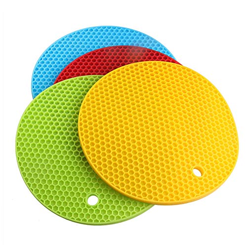 Merssavo シリコーンラウンドハニカムパッドマットノンスリップクッション(4PCS赤、黄色、緑、青の4点セット)