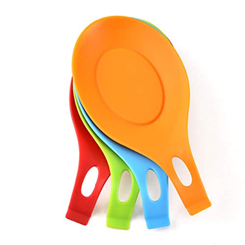 Merssavo レッドオレンジブルーグリーンレッドブルーグリーンシリコンスプーンマット(4PCS)