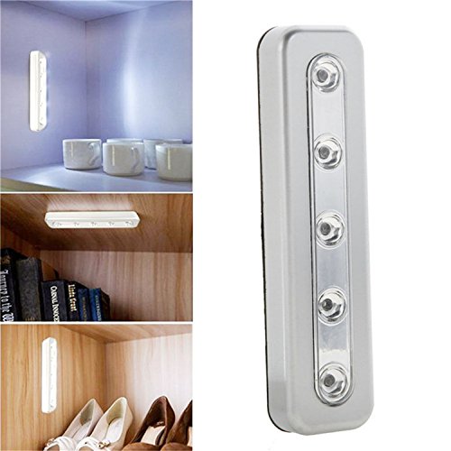 Merssavo ワイヤレス5 LEDスーパー明るいクローゼットキッチンキャビネットカウンター照明白